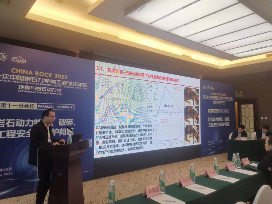 2023年10月21日—22日,CHINA ROCK 2023第20次中国岩石力学与工程学术年会在北京隆重举行。同期,由工程安全与防护分会联合岩石动力学专委会、岩石破碎工程专委会承办的大会第11分会场顺利召开。本次分会场从筹备到召开,得到了工程安全防护分会理事长戚承志教授、秘书长王源教授,岩石动力学专委会主任李海波研究员、秘书长黄理兴研究员,岩石破碎工程专委会主任周子龙教授、朱万成教授、秘书长王少锋教授的高度重视和亲切指导,同时获得了来自三家分支机构的100余位理事、会员的积极响应。此外,北京建筑大学积极组织卫星分会场,共计220余人参会。